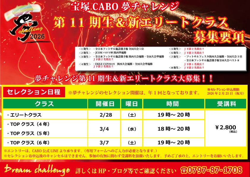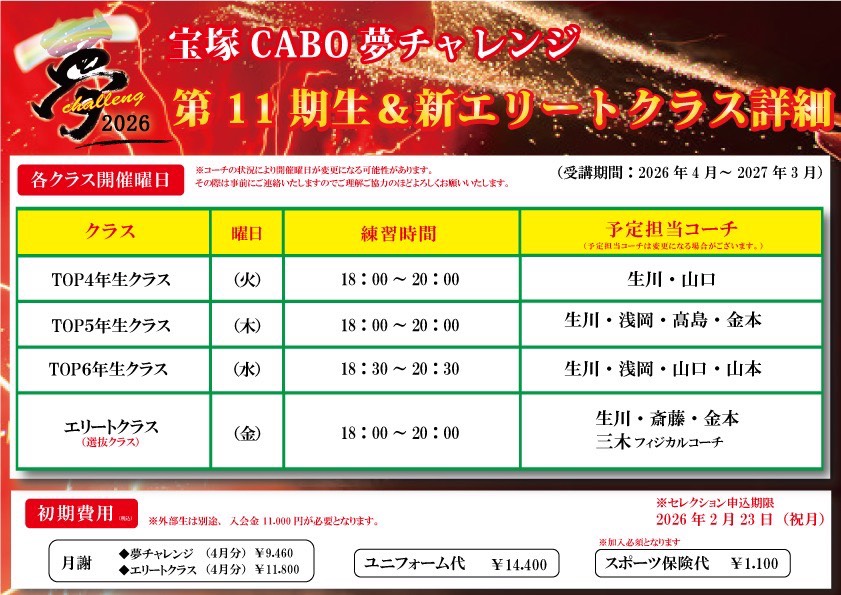 ホーム » 🔥2026年度 エリートクラス及び新・夢チャレンジの概要とセレクション情報🔥